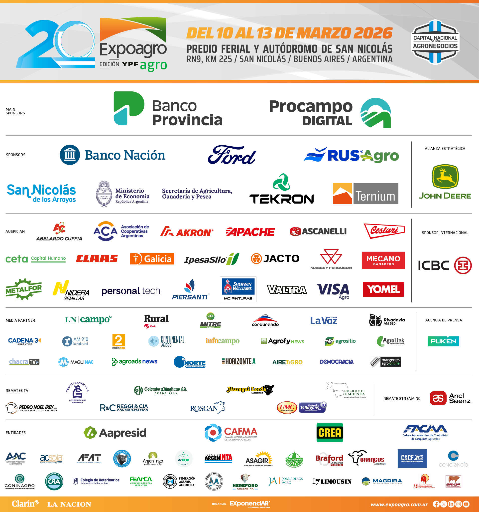 Se aproxima el mes de marzo, el agro se reúne y ya es una tradición: San Nicolás es la casa de Expoagro. En la próxima cita de Expoagro 2026 edición YPF Agro, la ciudad seguirá demostrando el progreso que la consolida como referente en la región. Con infraestructura y servicios puestos a disposición de los visitantes, San Nicolás será una vez más la anfitriona para el mundo de la agroindustria, y volverá a sorprender.
