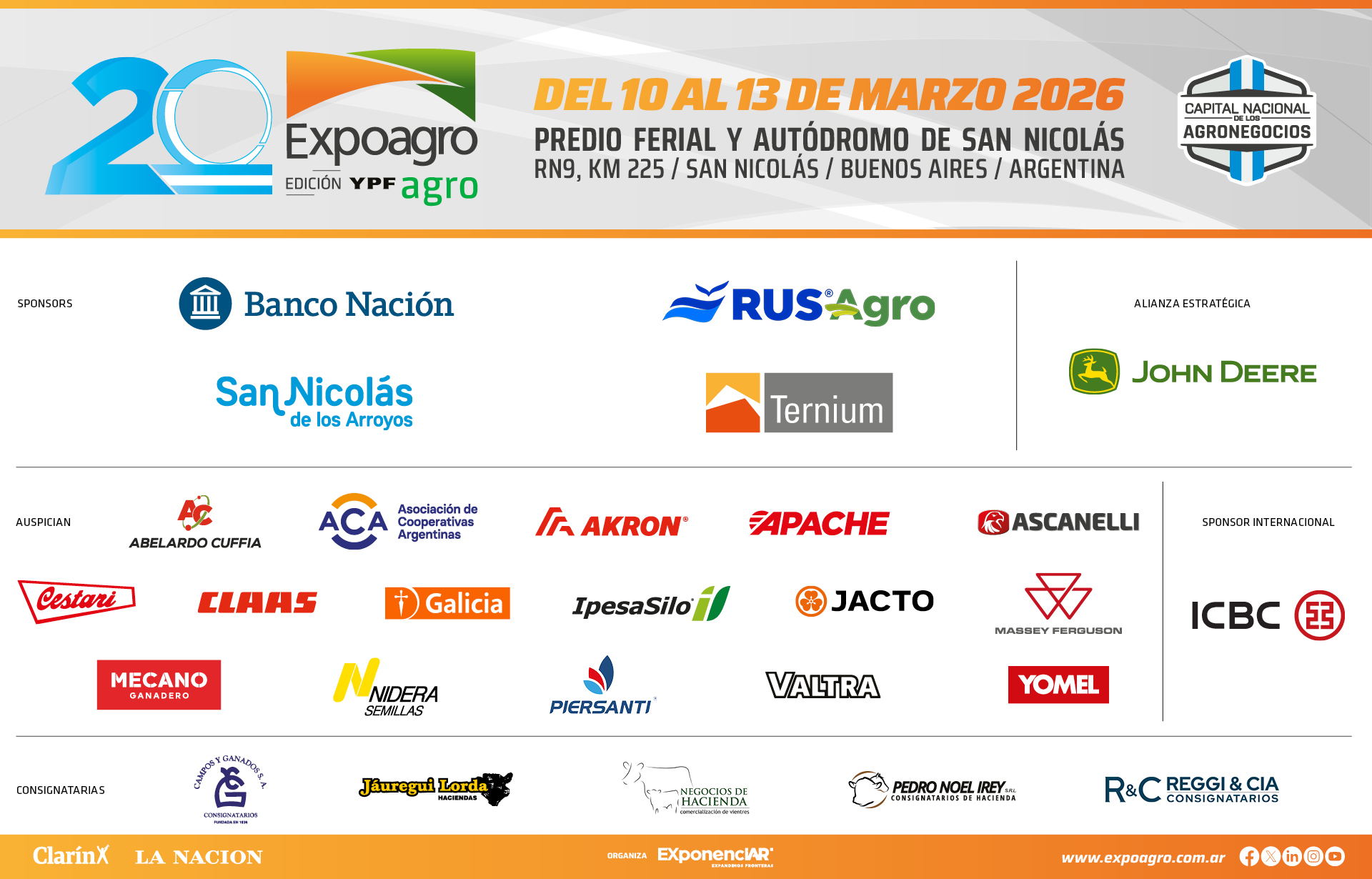 Expoagro es una oportunidad única para tomar contacto con el consumidor sin intermediarios. Durante la muestra, se genera el mejor clima de negocios destinado a hacer crecer al sector agroindustrial argentino. Expoagro es parte de tu estrategia comercial.