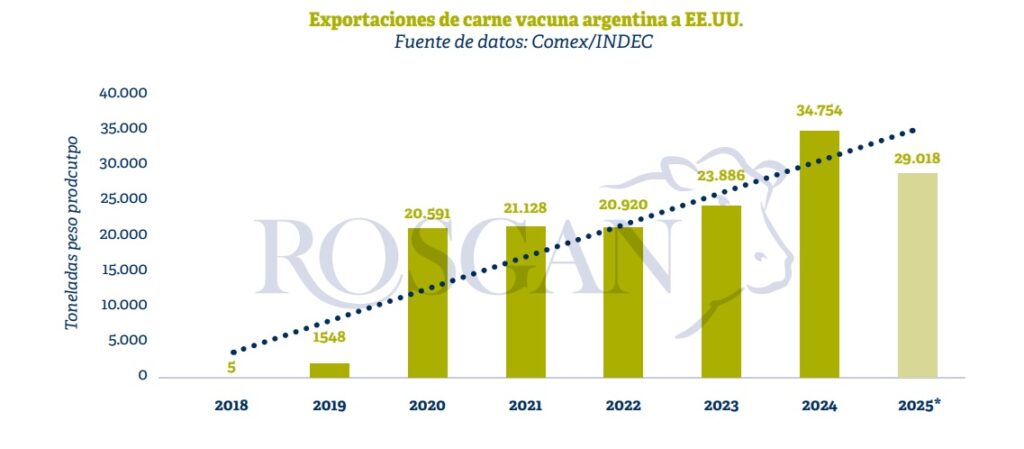 Para poner en contexto, Estados Unidos es para Argentina un mercado aún poco desarrollado desde su reapertura a fines de 2018. Hasta 2022, el volumen ingresado a este mercado se limitó prácticamente al cupo anual de 20.000 toneladas libres de arancel.