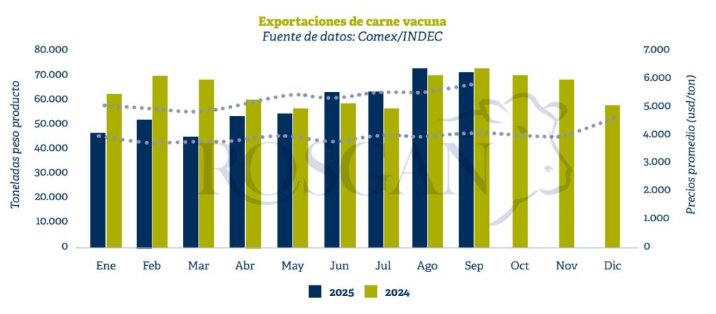 Es importante recordar que, durante los primeros meses del año, las exportaciones de carne mostraron un desempeño bajo en comparación con el año anterior, principal mente en términos de volumen, situación que fue compensada parcialmente por mejores precios.