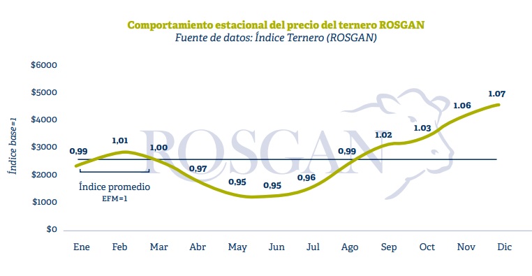 Sin dudas, detrás de las subas registradas durante septiembre y octubre existe un componente estacional que explica gran parte de esta tendencia alcista en los precios. La propia dinámica de salida de los terneros de los campos genera momentos de mayor concentración de oferta —con efecto bajista sobre los precios— y otros en los que la oferta comienza a escasear, lo que tiende a impulsar los valores al alza. Tal es el caso de los meses de septiembre, octubre, noviembre y diciembre, cuando los precios de la invernada suelen ubicarse entre 2 y hasta 7 puntos porcentuales por encima del promedio general anual.