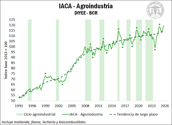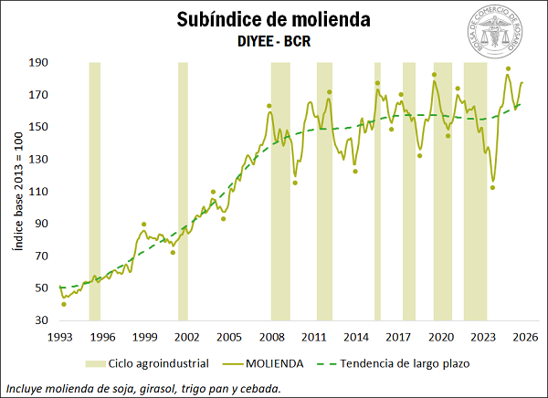 El IACA-BCR mostró en octubre un crecimiento interanual del 4%, aunque se posiciona 0,2% por debajo de septiembre. La actividad agroindustrial se mantiene en niveles récords y la dinámica del sector exportador creció 0,6% respecto al mes anterior.