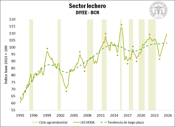 En lo que respecta al sector lechero, durante el mes de octubre la producción de leche habría registrado un nuevo incremento respecto al mes anterior, evidenciando 19 meses consecutivos al alza. Este aumento se ve impulsado por las buenas condiciones climáticas para la producción durante el último año, que han permitido un importante crecimiento de pasto, mejorando su participación en las dietas. Asimismo, el consumo per cápita en los primeros nueve meses del año registró un repunte del 14%, según datos del Observatorio de la Cadena Láctea (OCLA), traccionando la demanda.