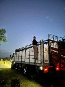 En relación a las habilidades necesarias para desempeñarse en el transporte de hacienda, la joven subraya que más allá de la destreza al volante, lo fundamental es la actitud frente a los desafíos. “Lo más importante es tener paciencia, ser firme y poder tomar decisiones rápidas cuando surge algún imprevisto sin ponerse nervioso. También es clave llevarse bien con el productor, con los signatarios y con los compañeros, porque todo el trabajo depende de una buena coordinación y de la confianza entre todos”, destaca.